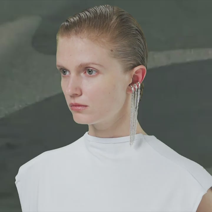 KVK Spider Series Three-Ring Silk Tassel Earrings - Platinum Left
